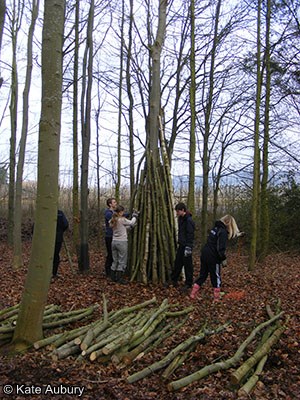 KCT work party volunteers building a beetle wigwam, KLNR |